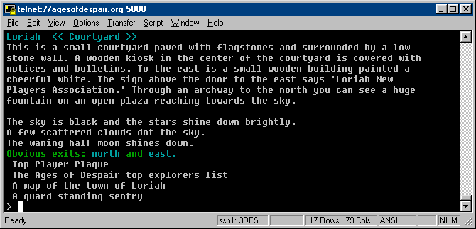 get on your way once you have logged on to the MUD.