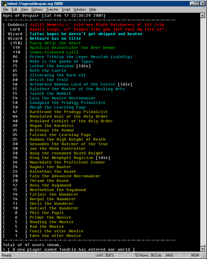 when logged on to the MUD and check out the list of other available